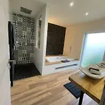 Bénéficiant d'une vue sur le jardin, l'intérieur comprend également un canapé. Vous profiterez également d'un vestiaire et d'un espace de repas, ainsi que d'une TV à écran plat avec des chaînes satellite. Les salles de bains comprennent également une douche à l'italienne, des toilettes séparées et une baignoire.